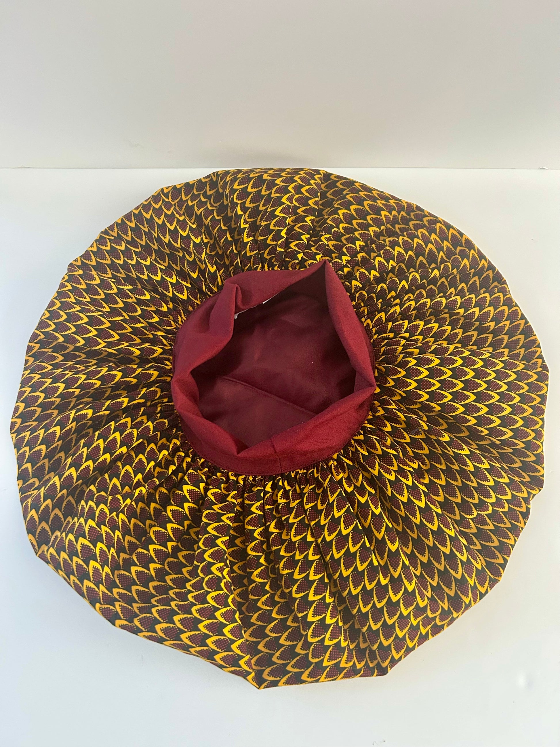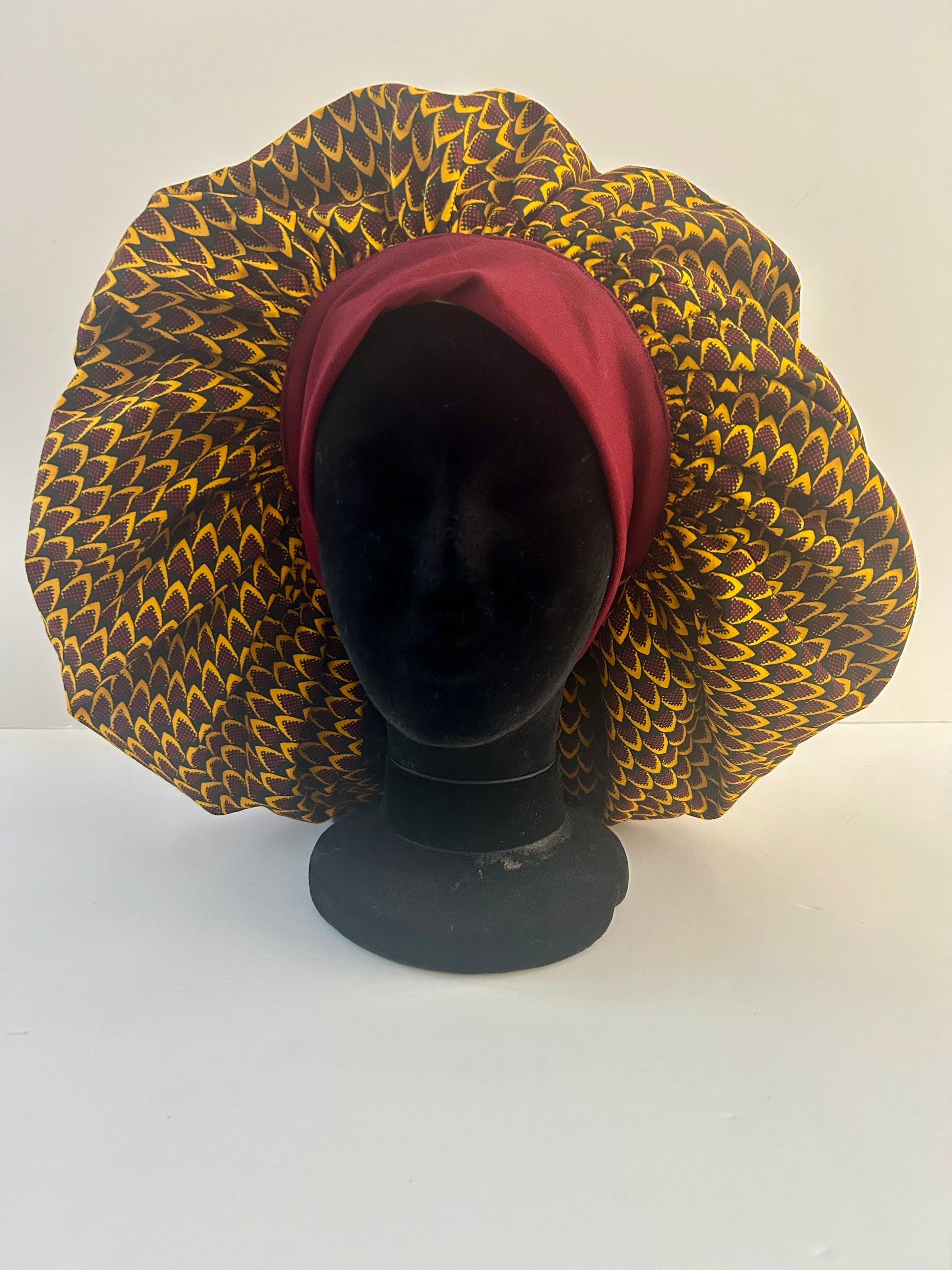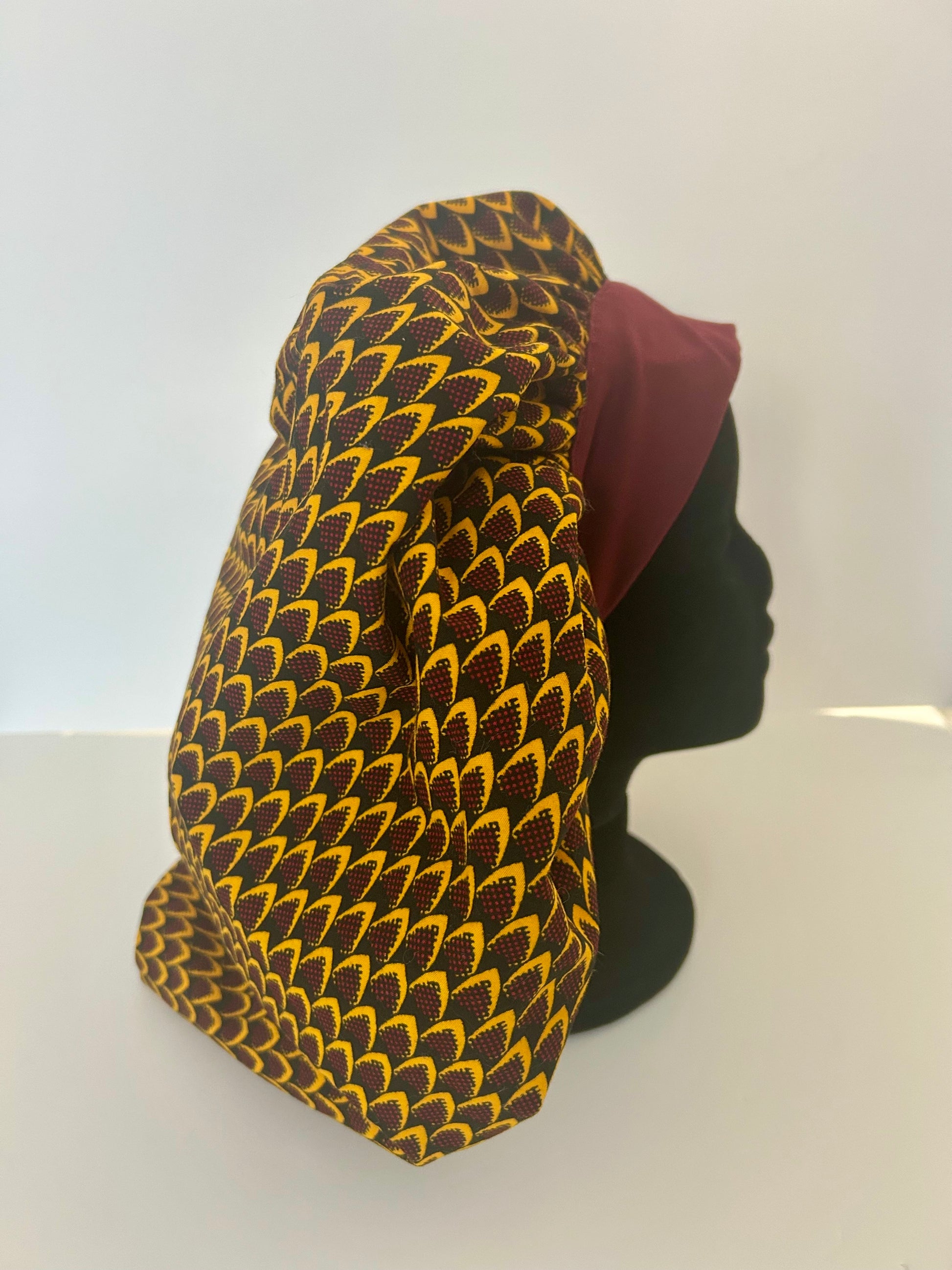 Onze haarbonnet is met de hand gemaakt in België uit 100% traditionele Afrikaanse stof, met een zachte satijnen voering aan de binnenkant die je haar beschermt tijdens het slapen. De bonnet helpt kroezen, klitten en haarbreuk te verminderen, terwijl je kapsel langer mooi blijft.