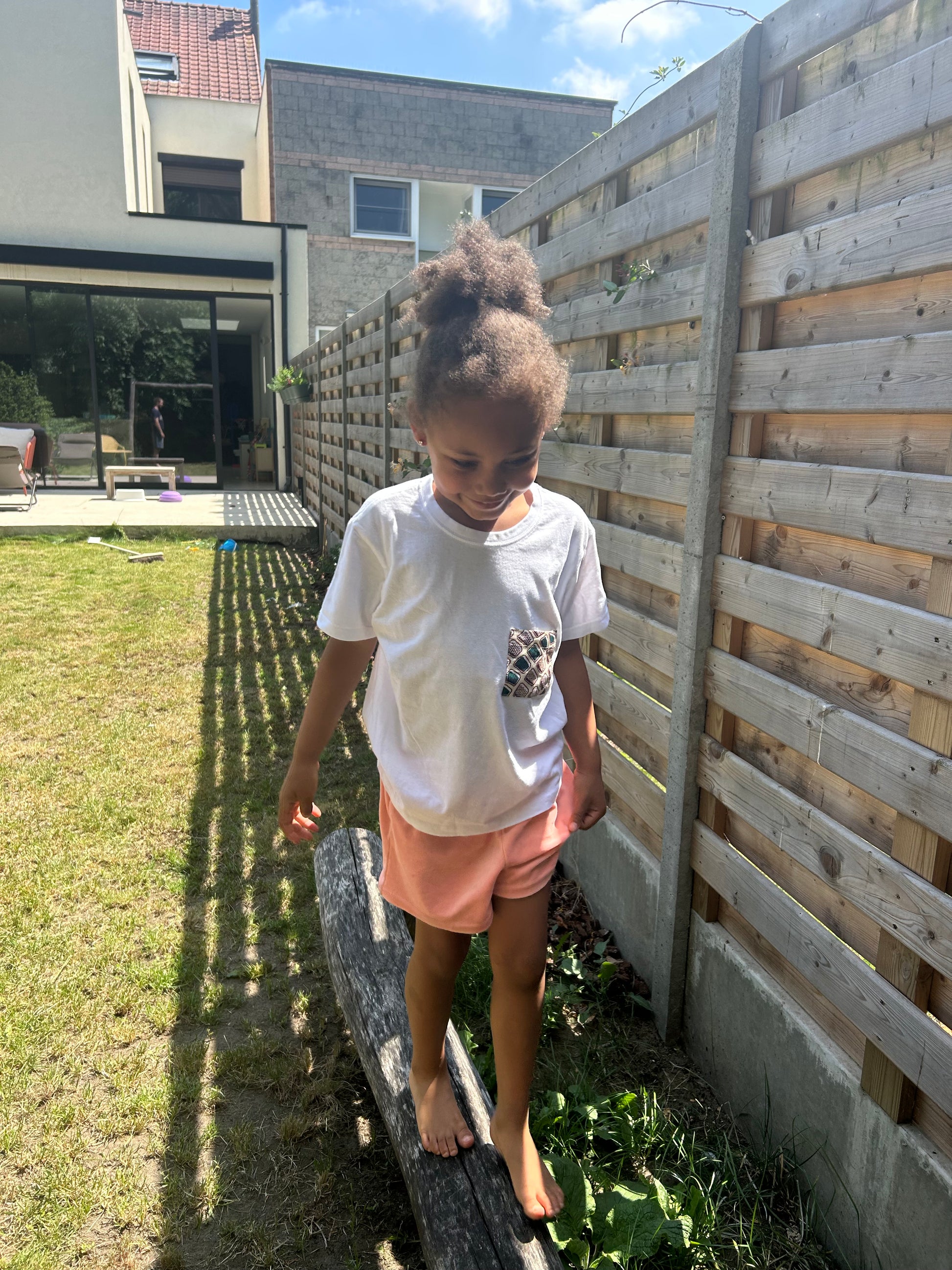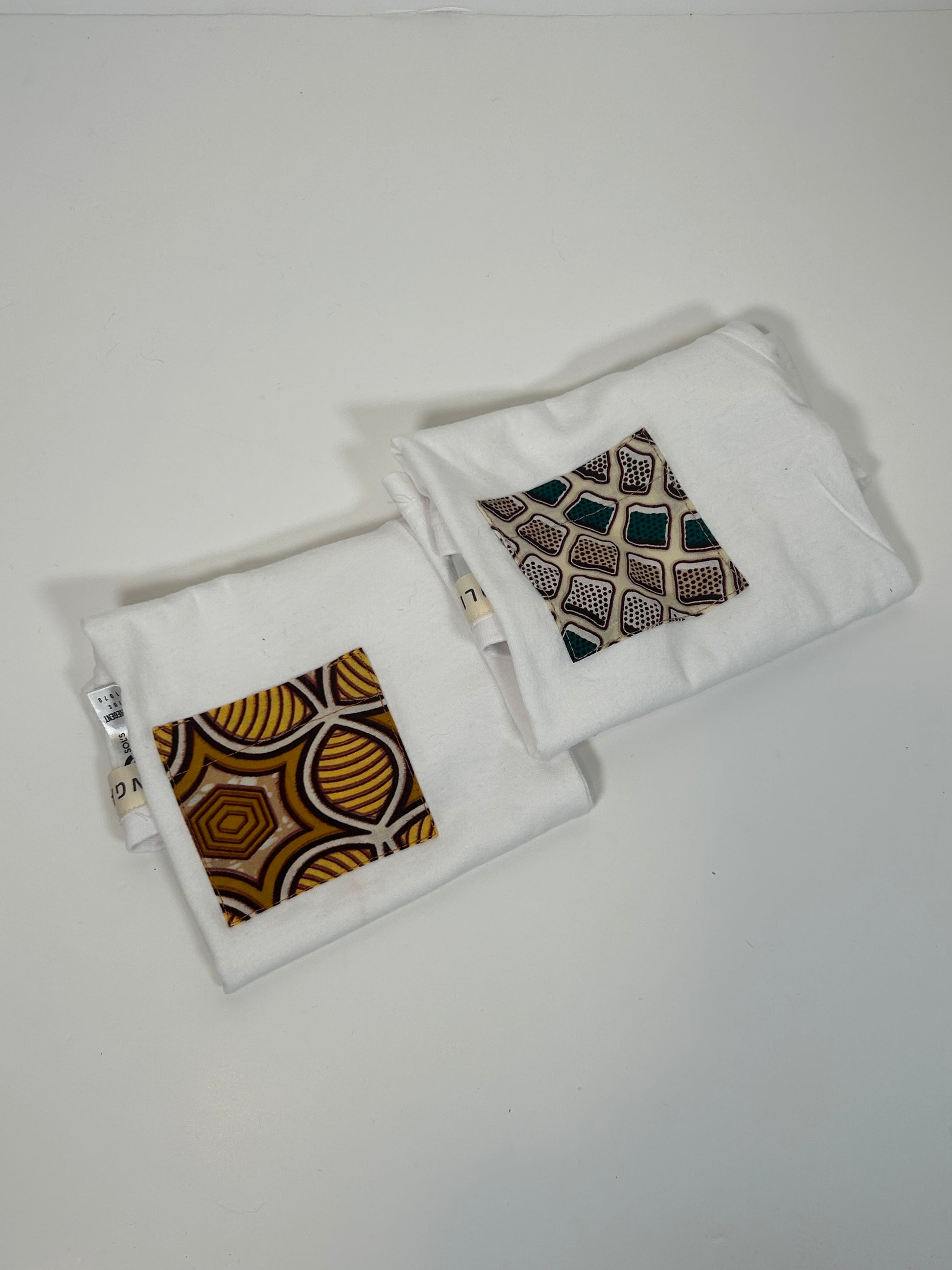 Deze Limited Edition KOLINGA kids T-shirts zijn voorzien van een opvallend, handgestikt borstzakje, gemaakt van 100% traditionele Afrikaanse stof in België.