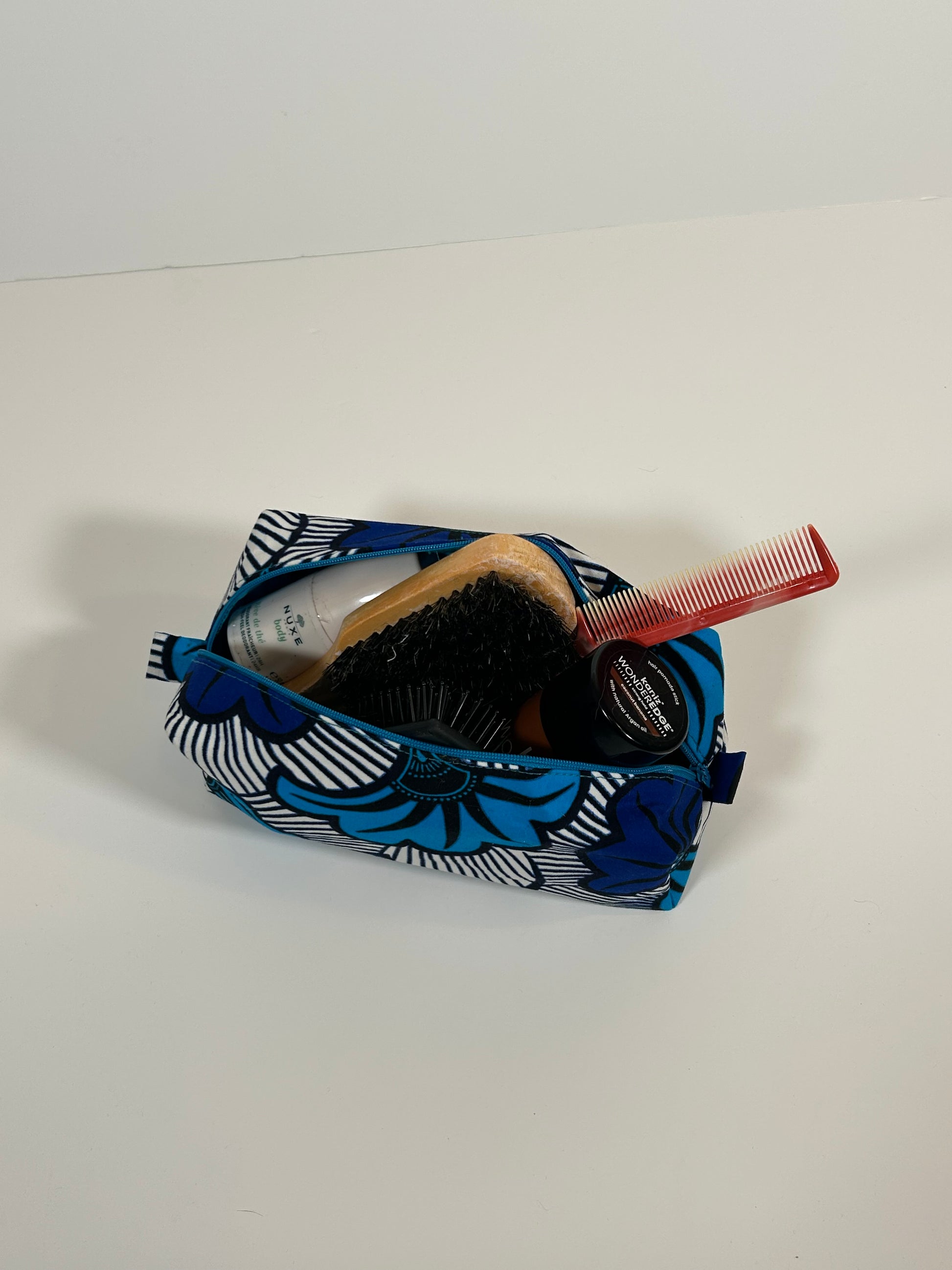 Reis in stijl met onze handgemaakte toilettas, met liefde vervaardigd in België! Deze tas is perfect om al je essentials netjes op één plek te bewaren - thuis of onderweg.